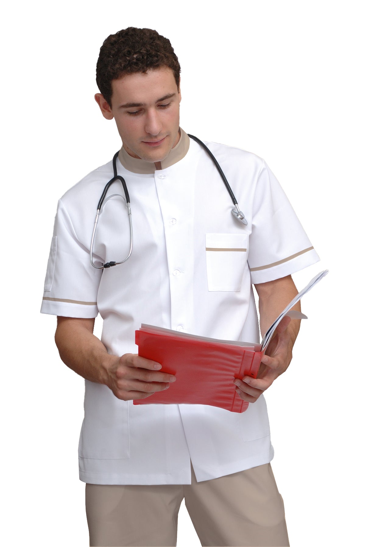 ORDER of men's white tunic with trim - beige color, model MS213-31