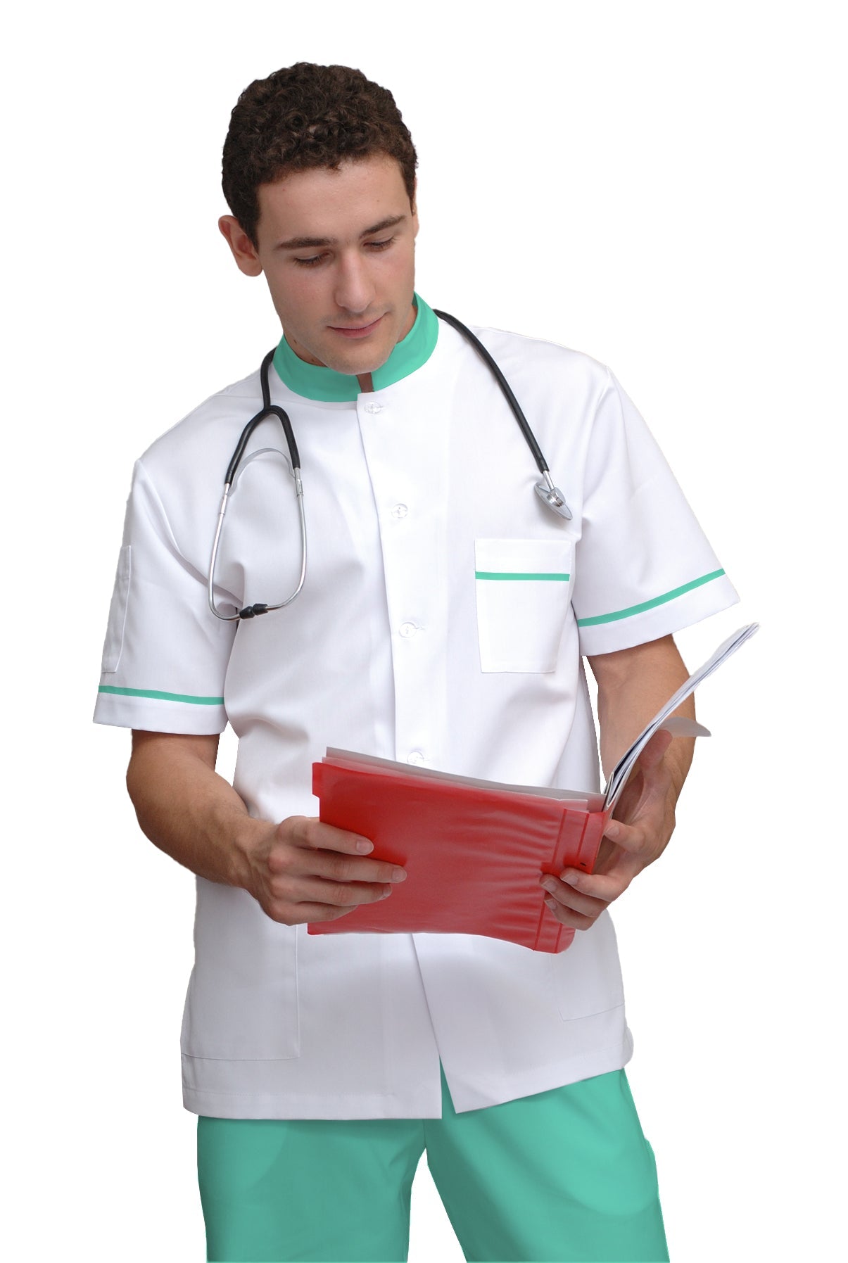 ORDER of men's white tunic with trim - mint color, model MS213-31