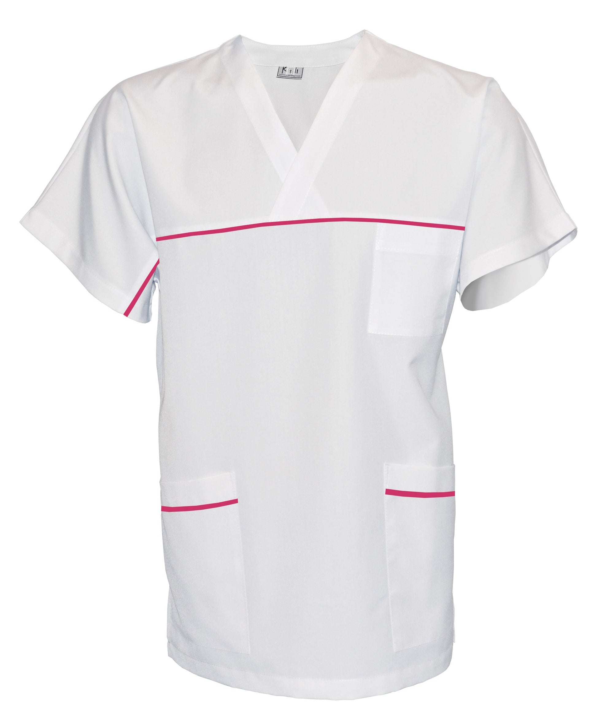 Unisex white tunic with trim - cyclamen color, model UX