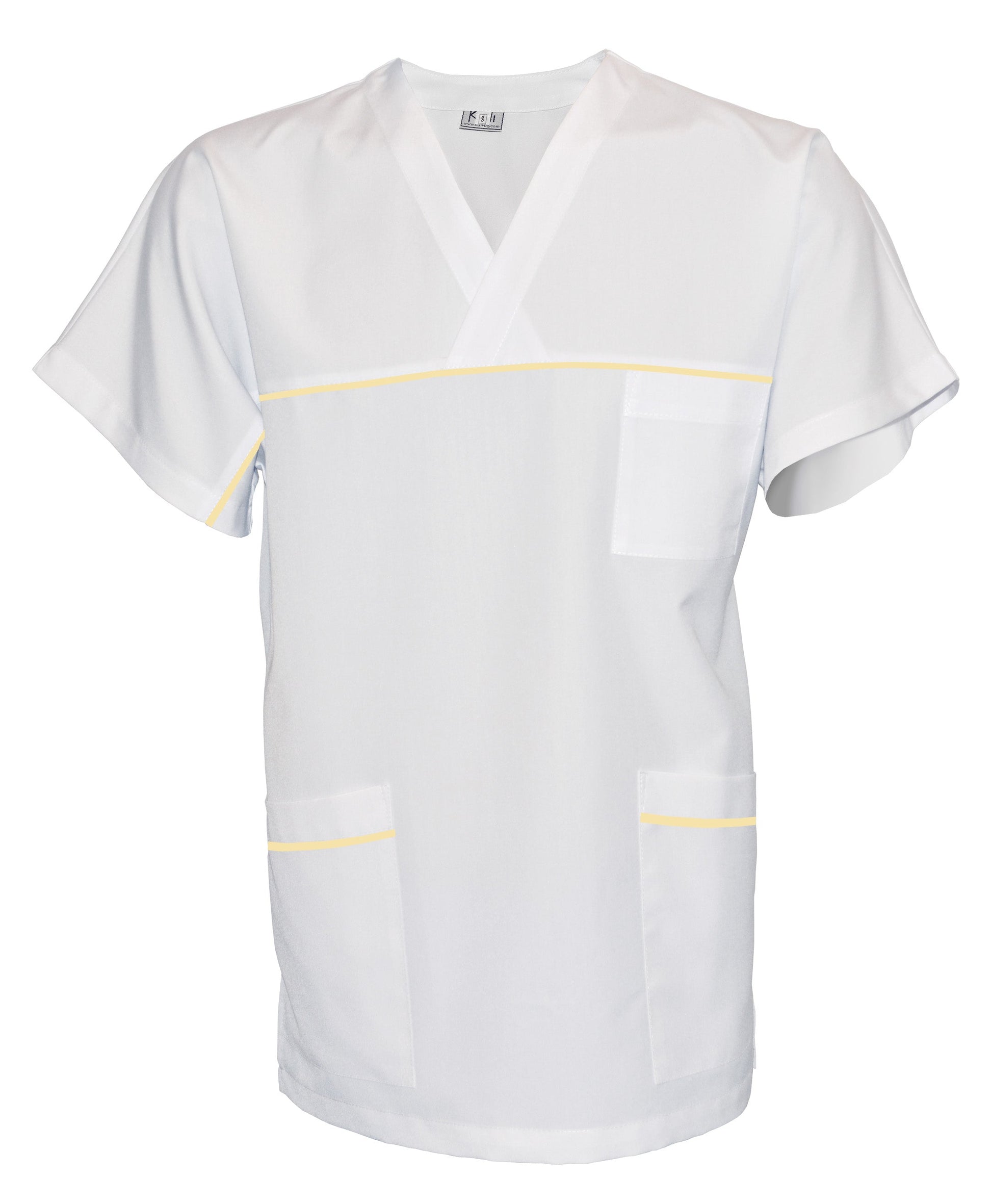 Unisex white tunic with trim - lemon color, model UX