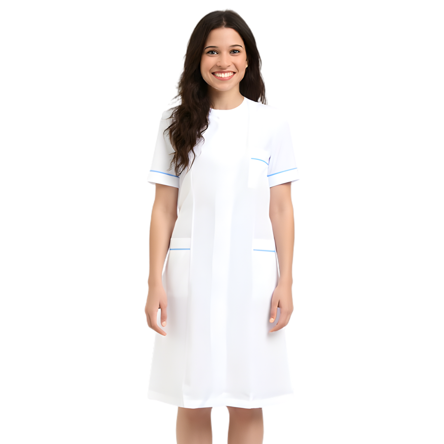 Дамска бяла престилка с гарнитура - цвят светлосин, модел F234-2U