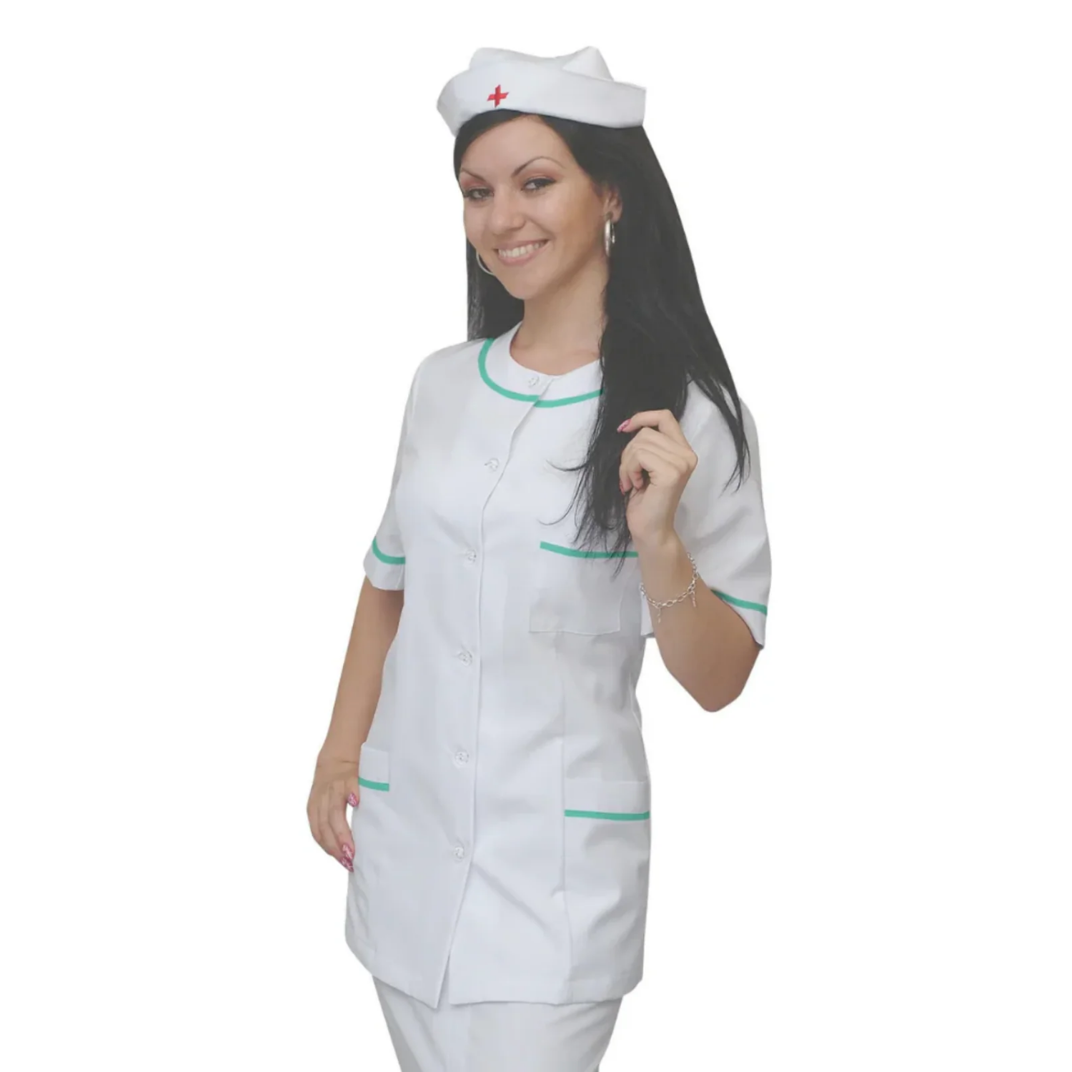 Дамска бяла туника с гарнитура - цвят мента, модел F222-2UO