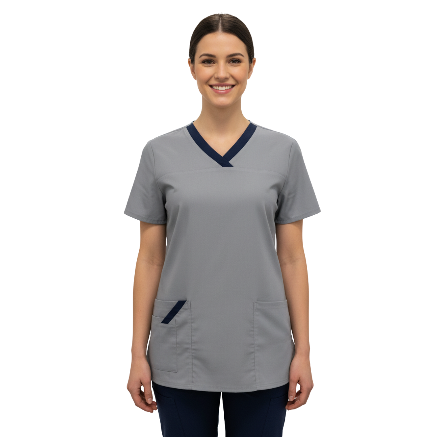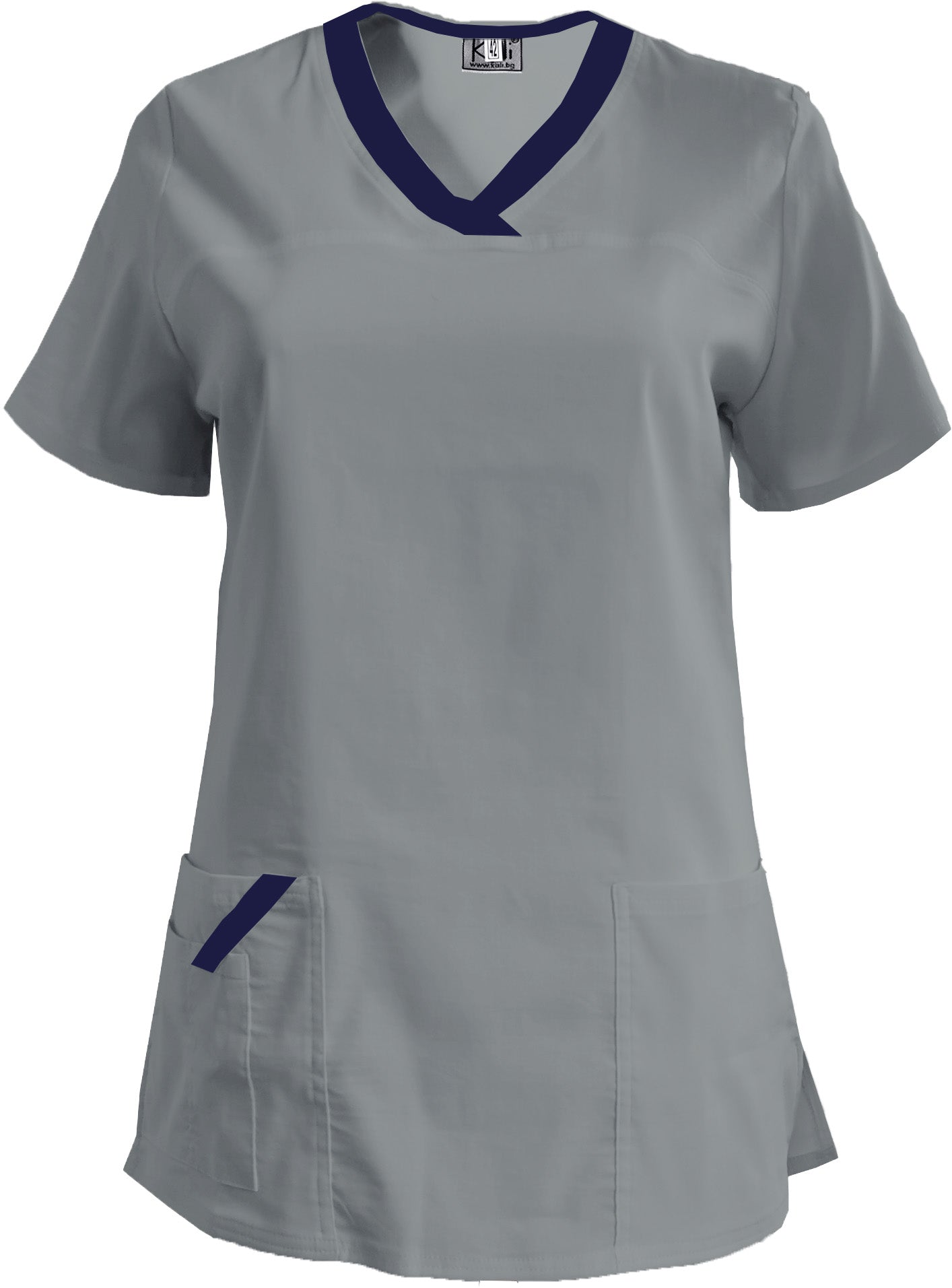 Дамска еластична туника - светло сива с кант тъмносин, модел FVE