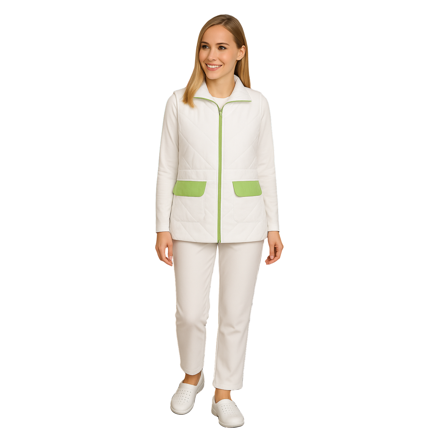 Дамски бял елек с гарнитура - цвят бледо зелен, модел ES230-1