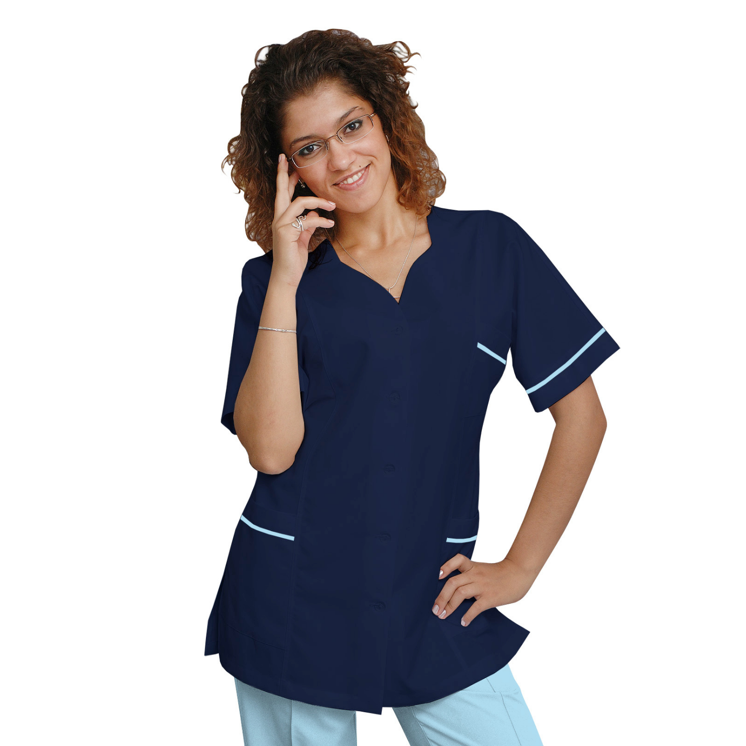 ПОРЪЧКА на дамска туника - цвят тъмносин с гарнитура по избор от клиента, модел FTSoft