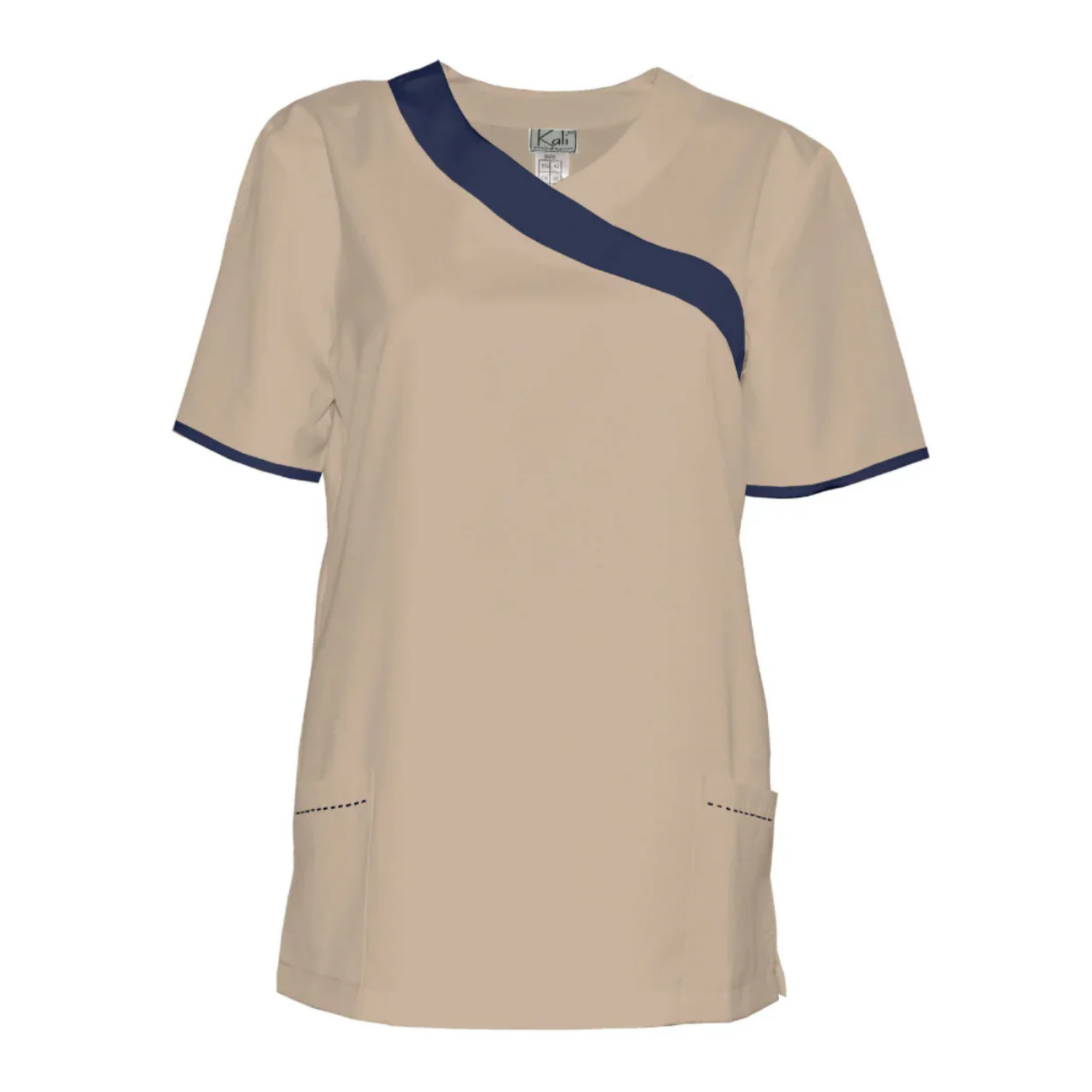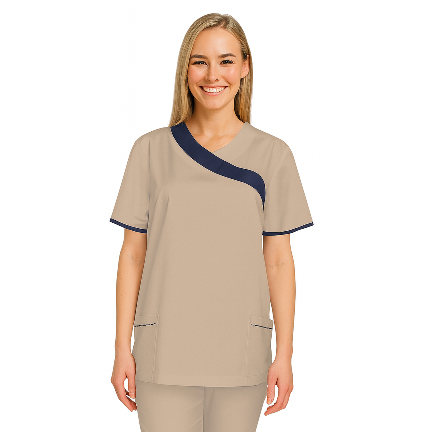 Дамска туника - цвят бежов с тъмносиня гарнитура, модел FVDL