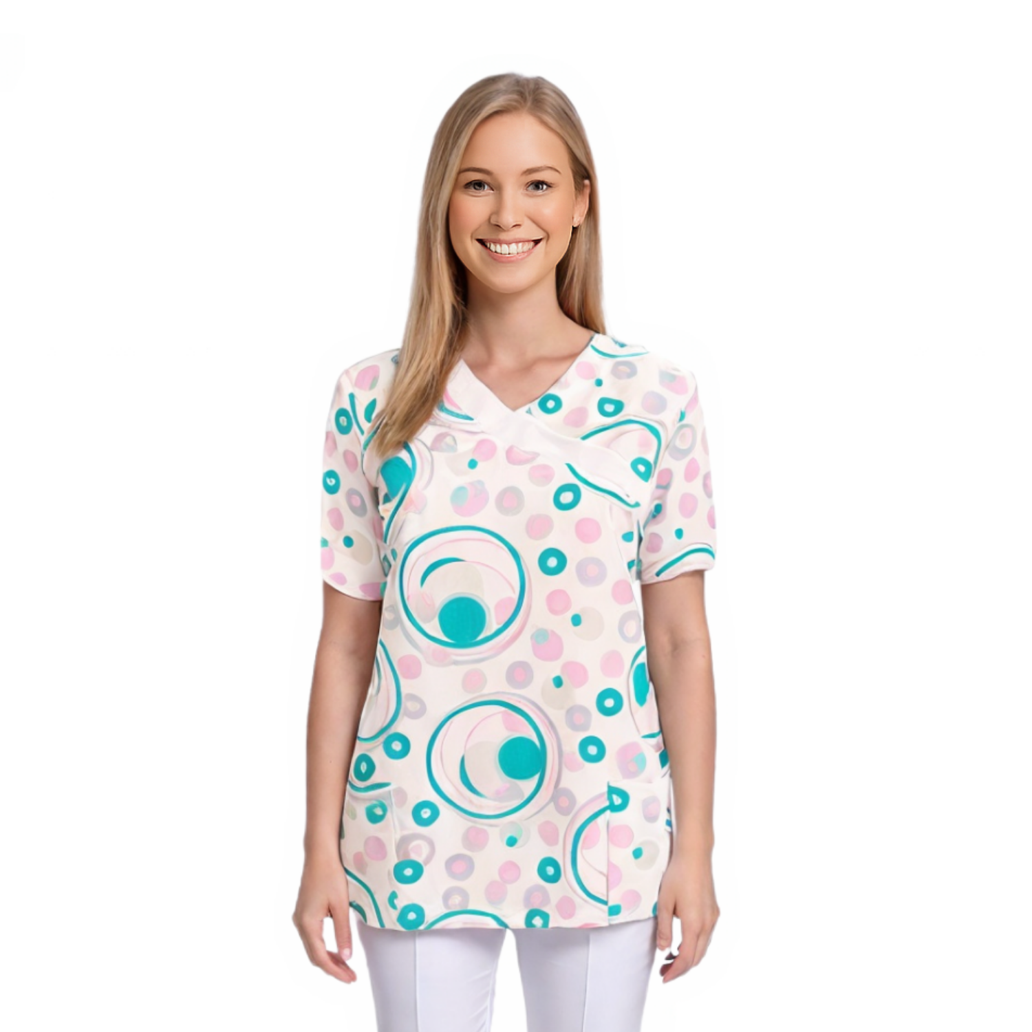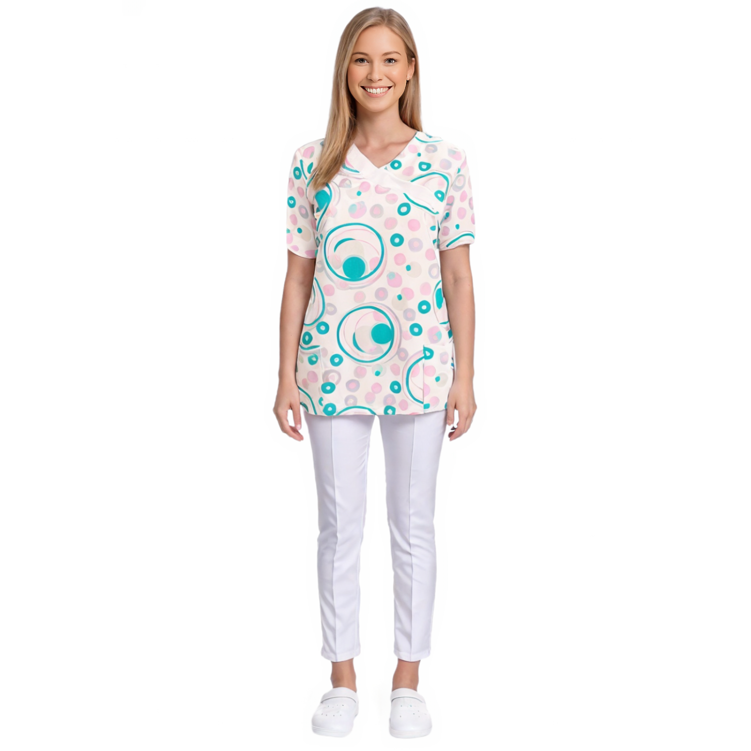 Дамска туника - кръгове с бяла гарнитура, модел FVDL